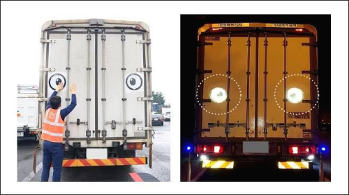 ‘잠 깨우는 왕눈이’는 한국도로공사가 개발한 눈 모양의 반사지로, 주간에는 후방차량 운전자의 시선을 자연스럽게 유도하고, 야간에는 전조등 빛을 약 200m 후방까지 반사시켜 전방 주시태만, 졸음운전을 예방하는 효과가 있는데요. 도로공사는 지난 3월부터 화물차 교통사고를 줄이기 위해 전국 주요 휴게소에서 화물차 ‘왕눈이’ 무상 부착과 함께 모범 화물운전자 선발제도, 화물차 안전운전 실천서약을 적극 홍보 중에 있으며 서약서를 작성한 운전자 1인당 3000원씩 적립해 최대 3000만 원의 기부금을 코로나19피해 지원단체에 전달할 계획이라고 합니다.