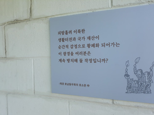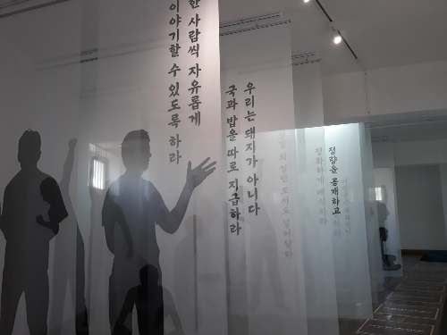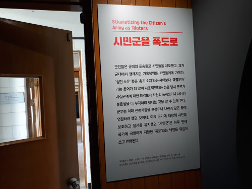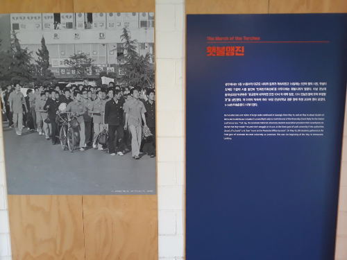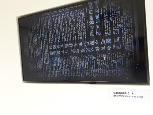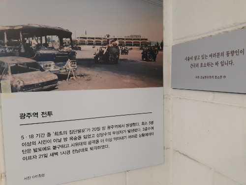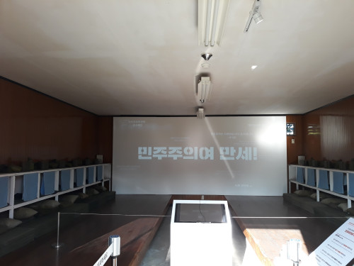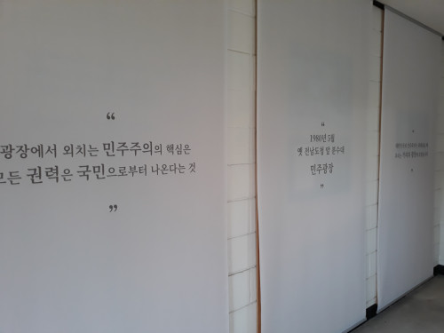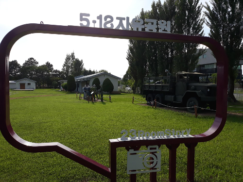 우선 입구로 들어가 봅니다. 포토존이군요. 멀리 계엄군이 시민을 제압하는 장면을 찍어봅니다.