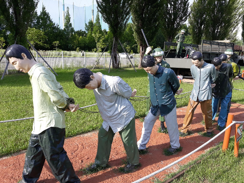 이곳 연병장은 원래 잔디가 없는 모래와 자갈이 깔린 곳이였습니다. 붙잡힌 시민들은 일반임에도 불구하고 이곳에서 군인들보다 더 혹독한 기합(얼차레)과 폭행 등으로 시민들을 초죽음으로 이르게 한 인권유린의 현장입니다.