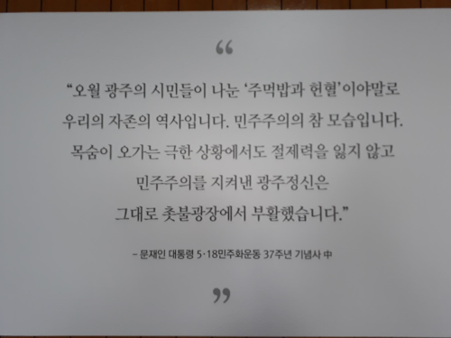 민주주의의 불꽃은 끝난게 아닙니다. 지금도 이어지고 있습니다.