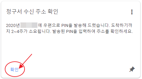 그창에는 청구서(PIN 편지)가 언제 우편으로 발송되었다는 내용도 보이는데요. 대략 도착전까지는 2주에서 4주 정도가 걸린다고 합니다.