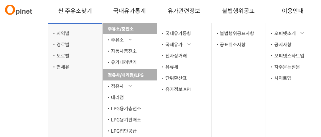 먼저 포털 검색사이트에서 '오피넷'을 검색하면 사이트를 확인할 수 있는데요. 한국 석유공사가 보유한 또 다른 사이트인 사업자를 위한 전문성을 갖춘 '페트로넷' 보다는 아주 간단하게 시민들이 알아볼 수 있게 사이트를 꾸며놓았습니다.