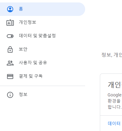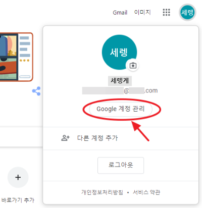 그러면 창에 Google 계정 관리 창이 보이는데 들어갑니다.