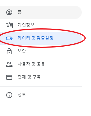 데이터 및 맞춤설정 메뉴를 클릭해 들어갑니다.