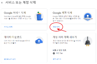 Google 계정 삭제가 보입니다.