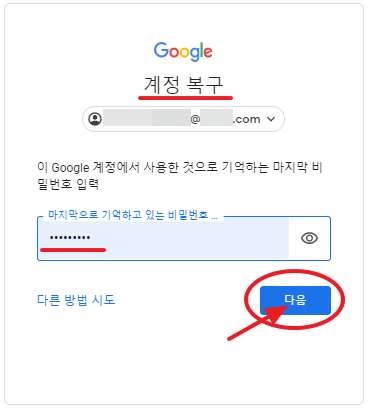 계정 지원을 클릭하여 복구 절차를 따르면 되겠습니다.