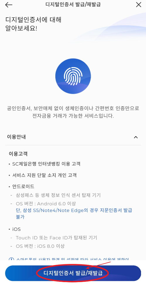 ▶간편한 디지털 인증서 발급받기(지문인식)
