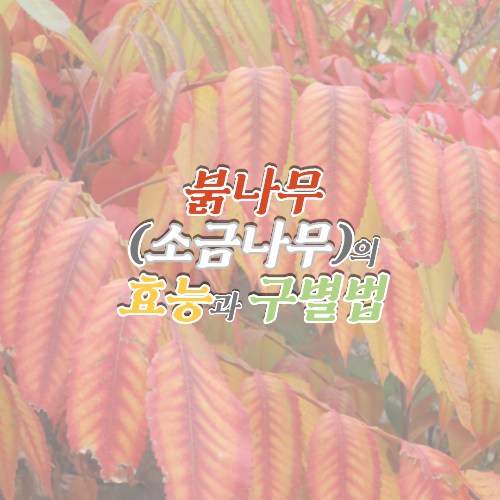이밖에도 우리 주의에 흔한 붉나무는 약재로 사용되어 몸에 유익한 효능들이 많이 있습니다. 오늘은 붉나무(소금나무)의 효능과 구별법에 대해 알아보도록 하겠습니다.