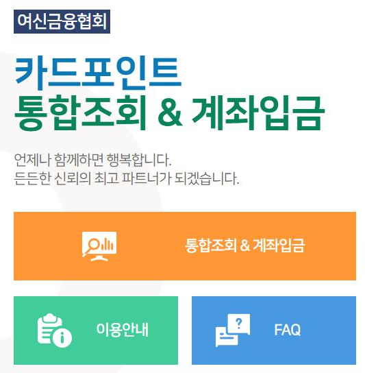 사이트 이용시 '여신금융협회 카드포인트 통합조회'라고 인터넷 검색 포털에서 검색을 하여 사이트를 접속하거나
