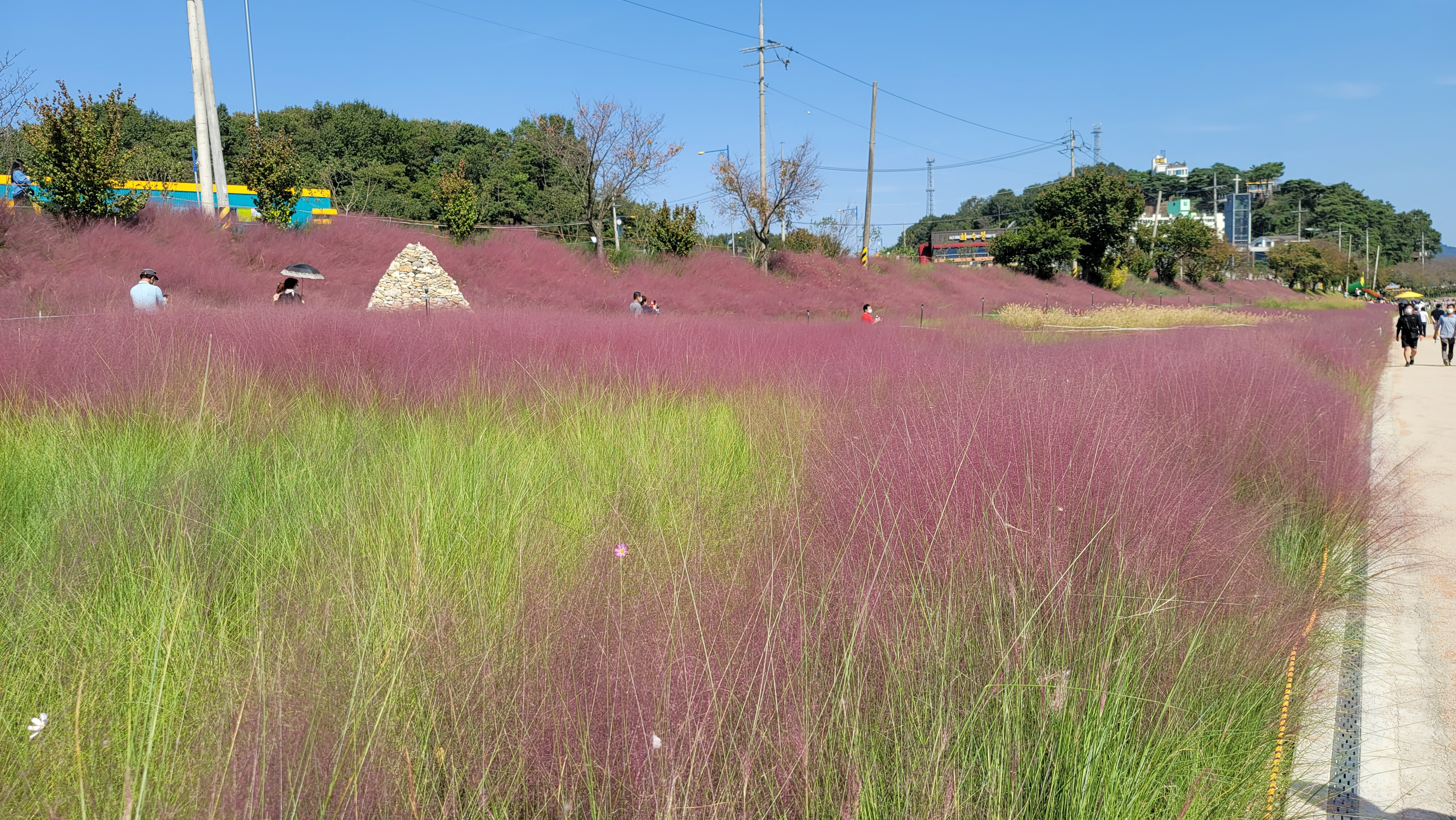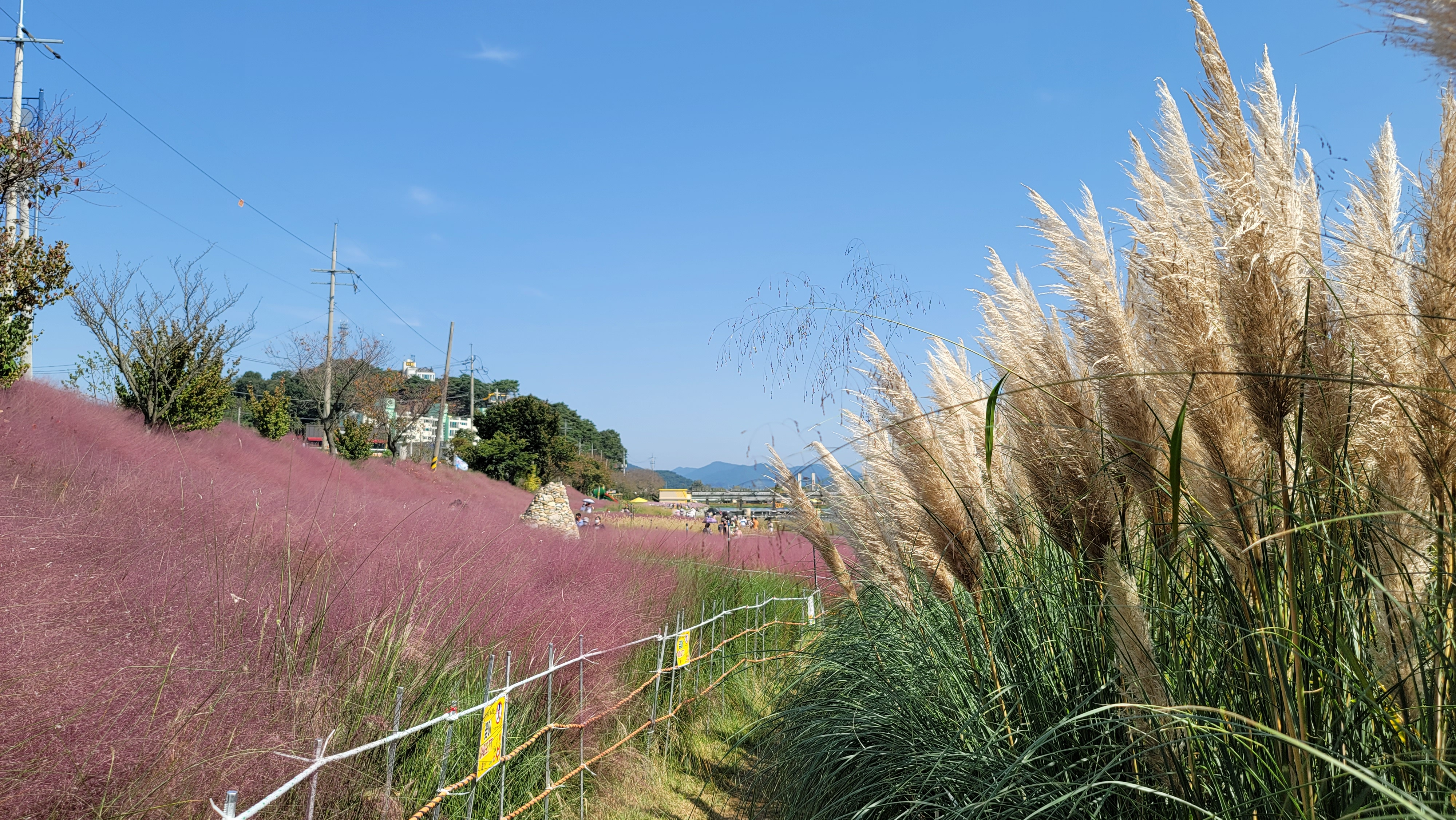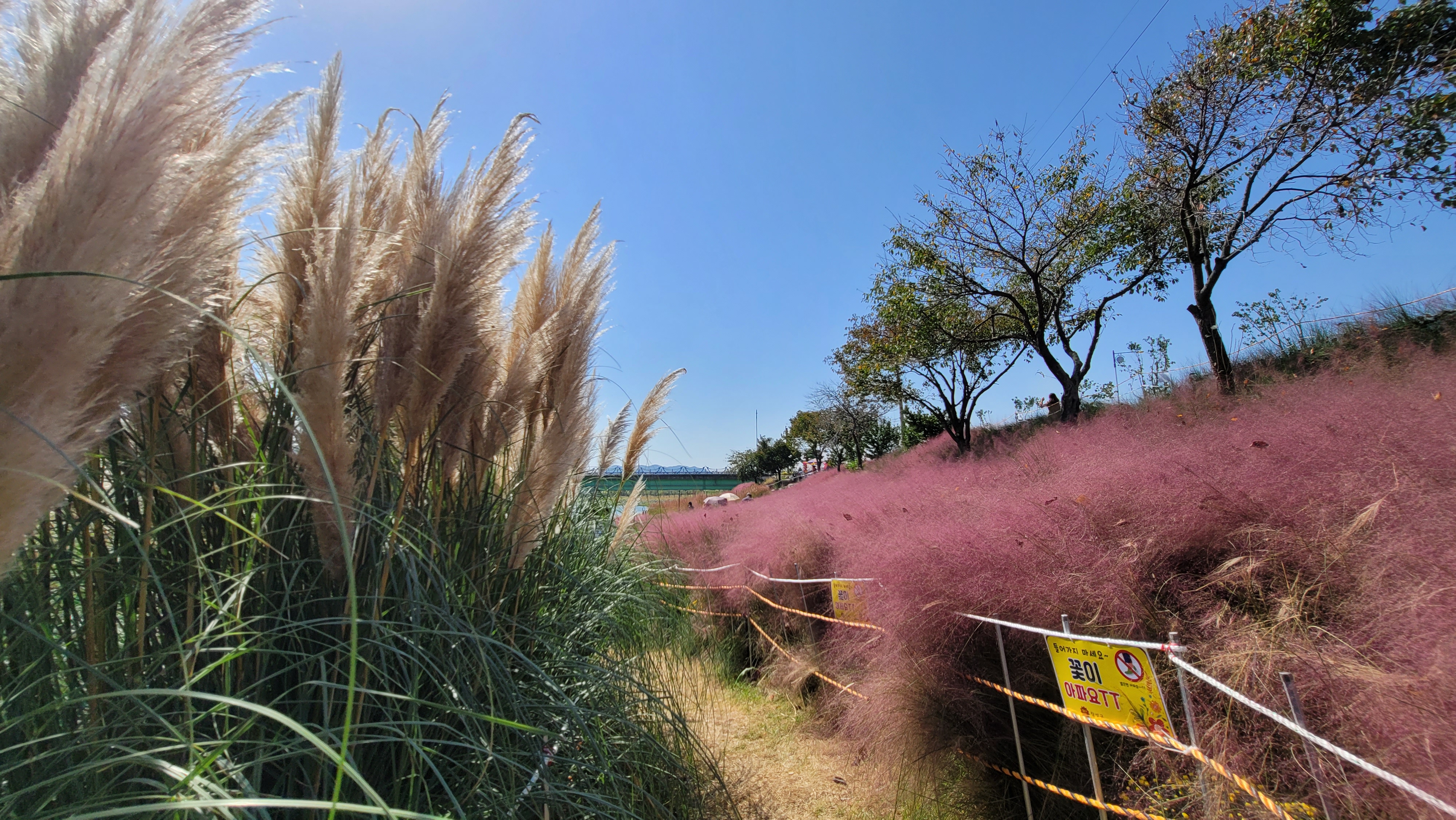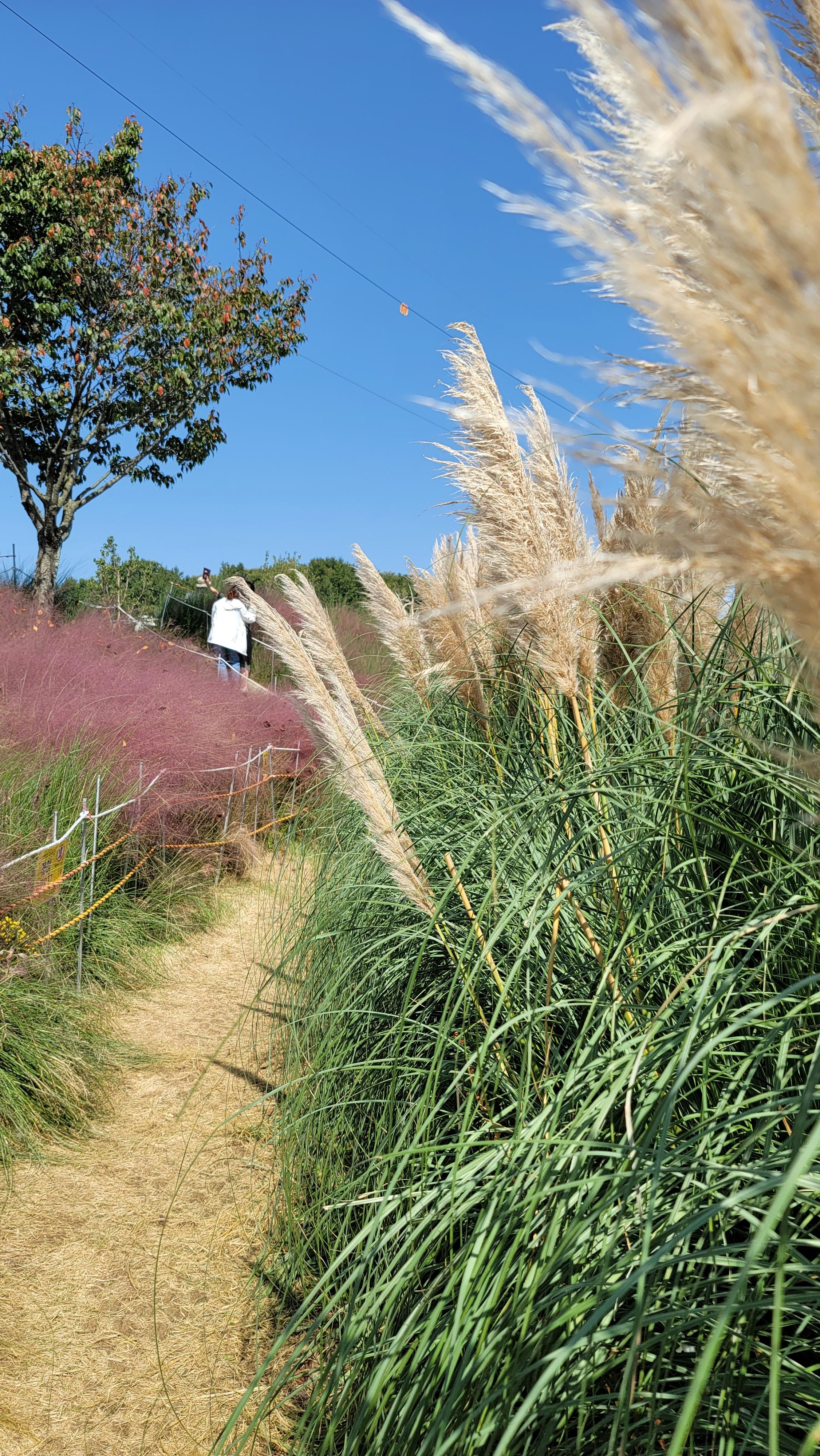 갈대와 핑크뮬리들이 보이기 시작한다. 사람들은 사이사이 들어가 사진 찍기 바쁘다.