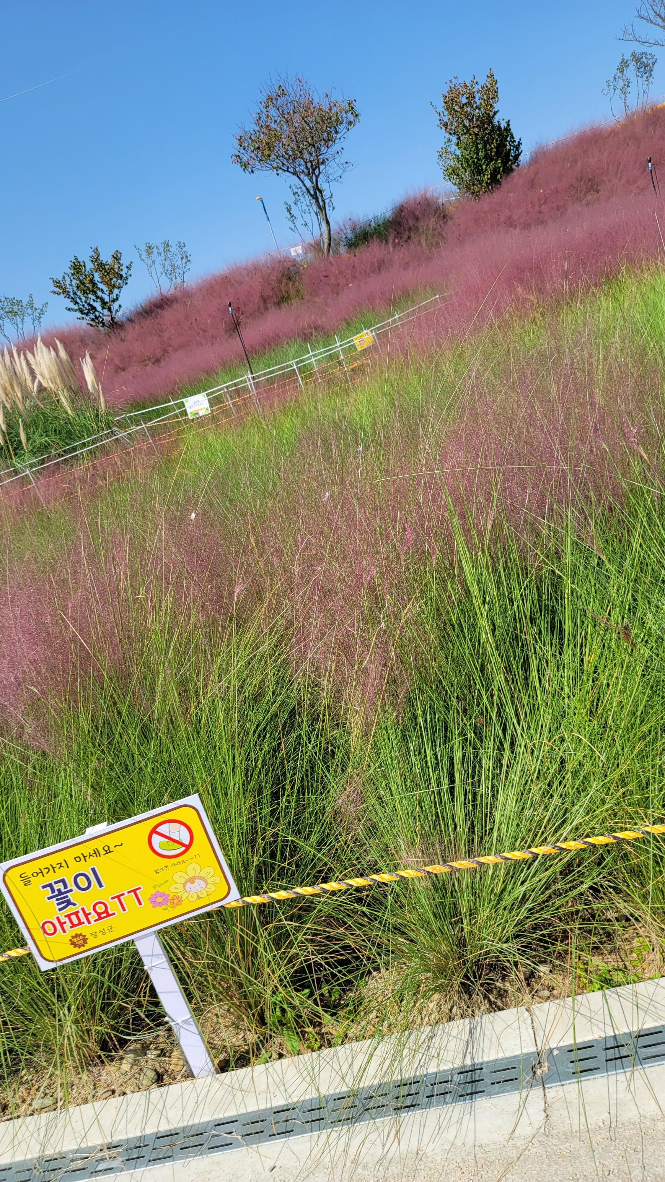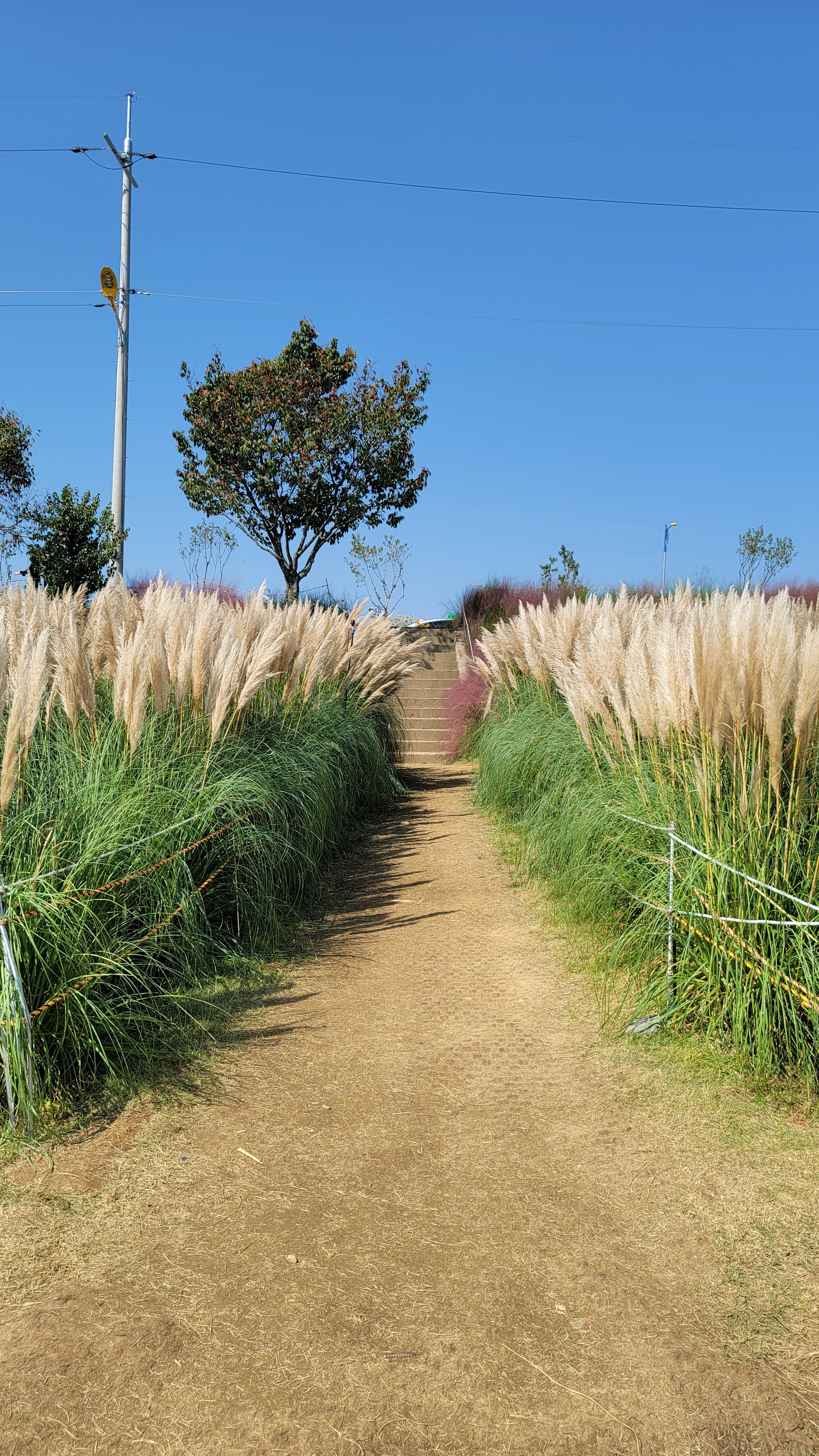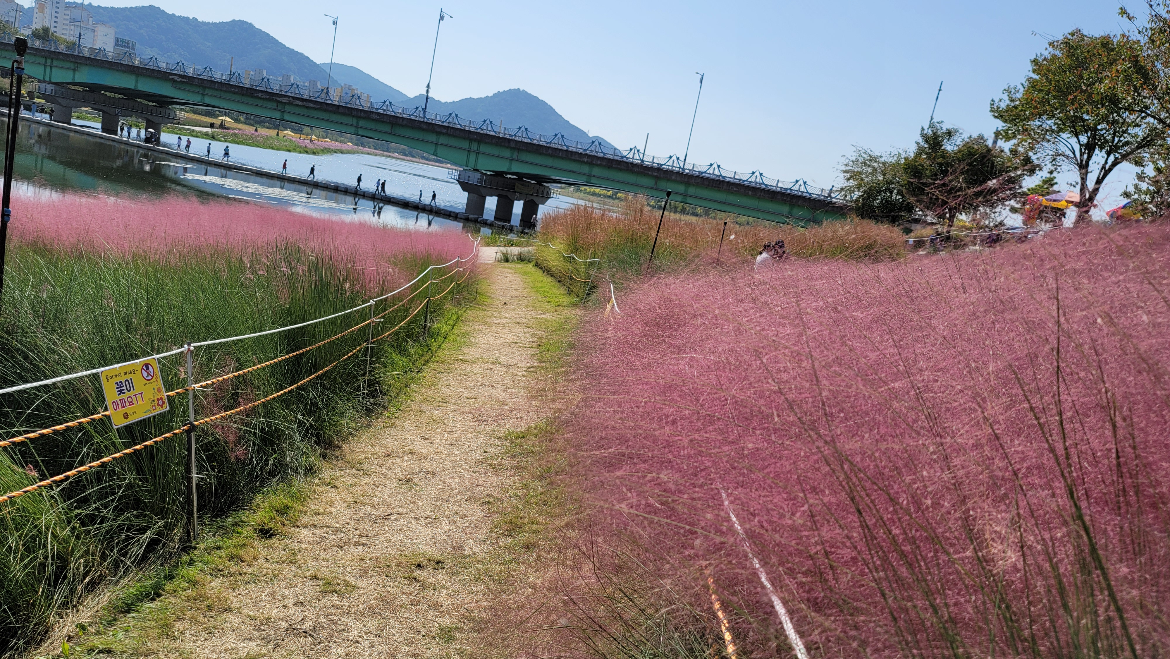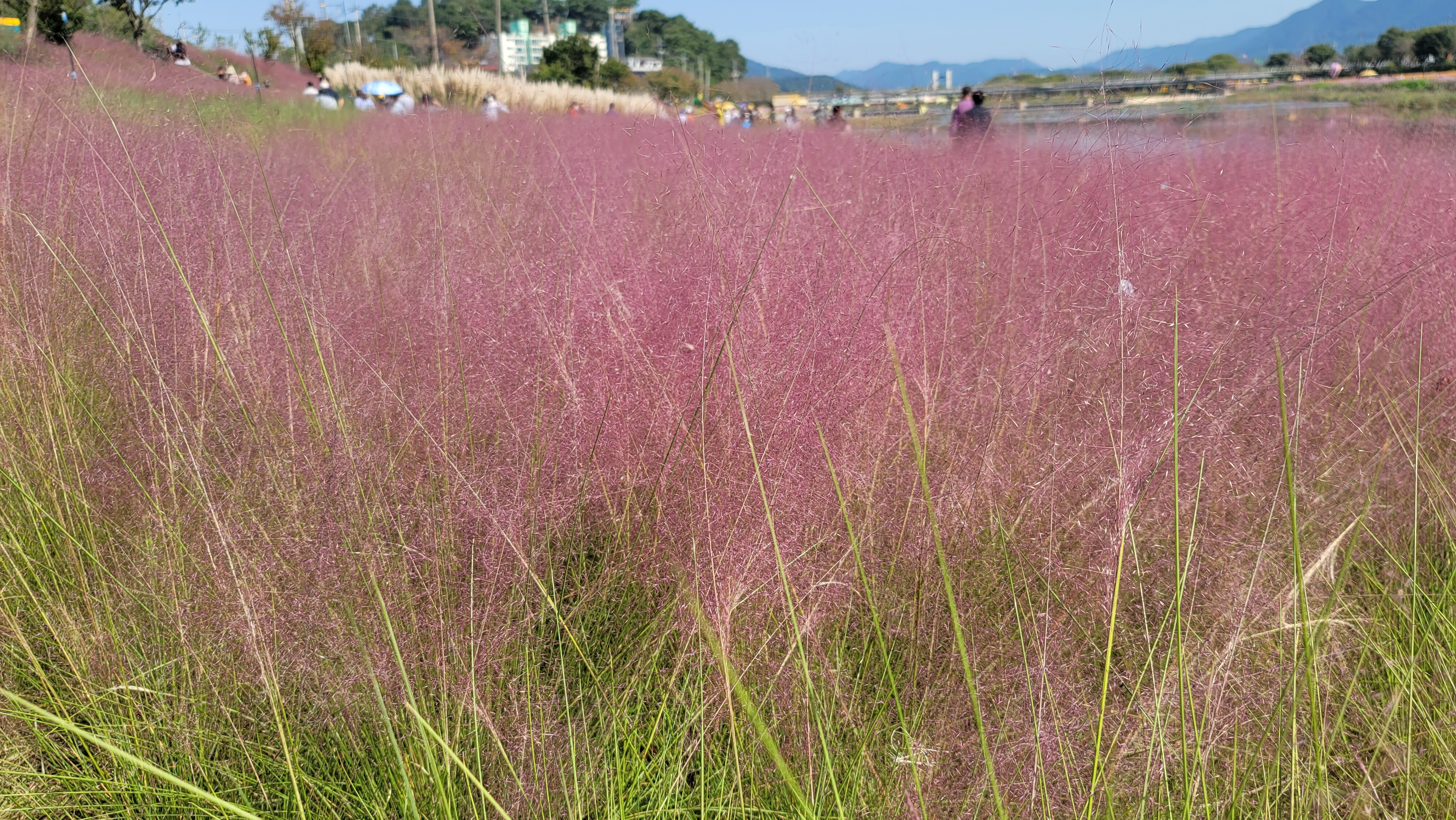 갈대와 핑크뮬리들이 보이기 시작한다. 사람들은 사이사이 들어가 사진 찍기 바쁘다.