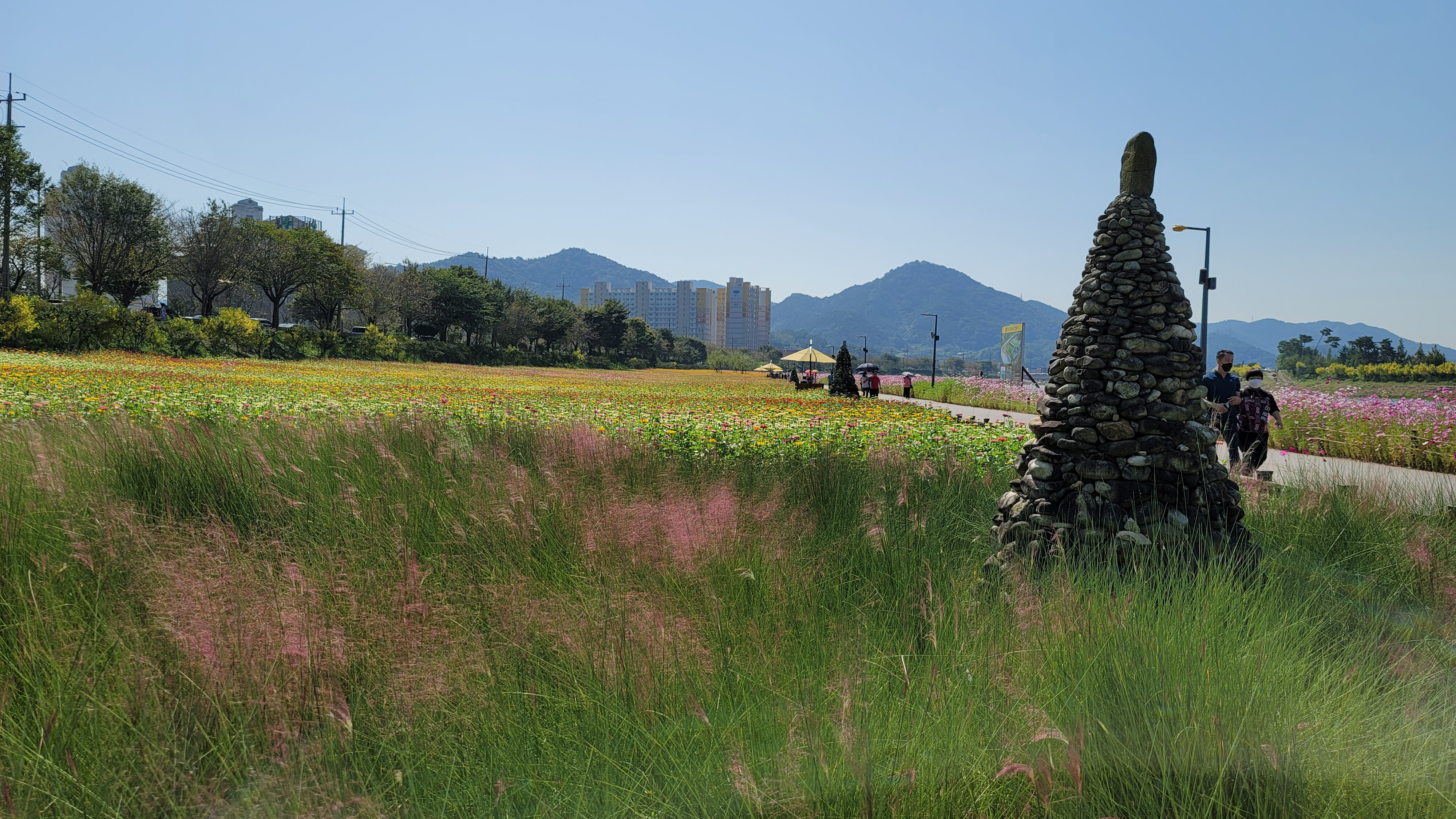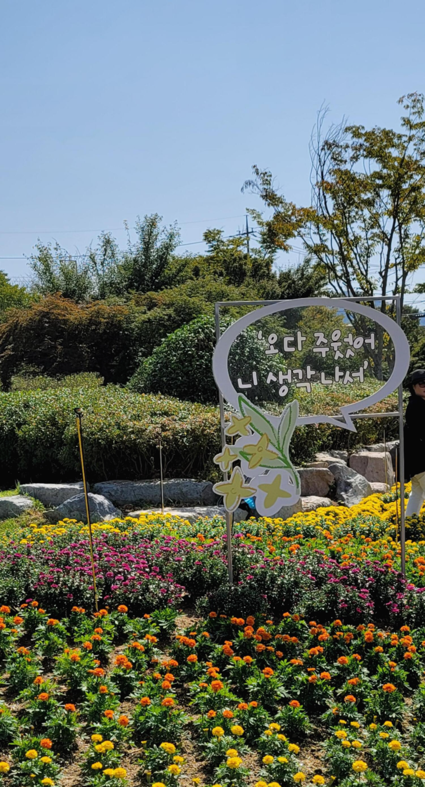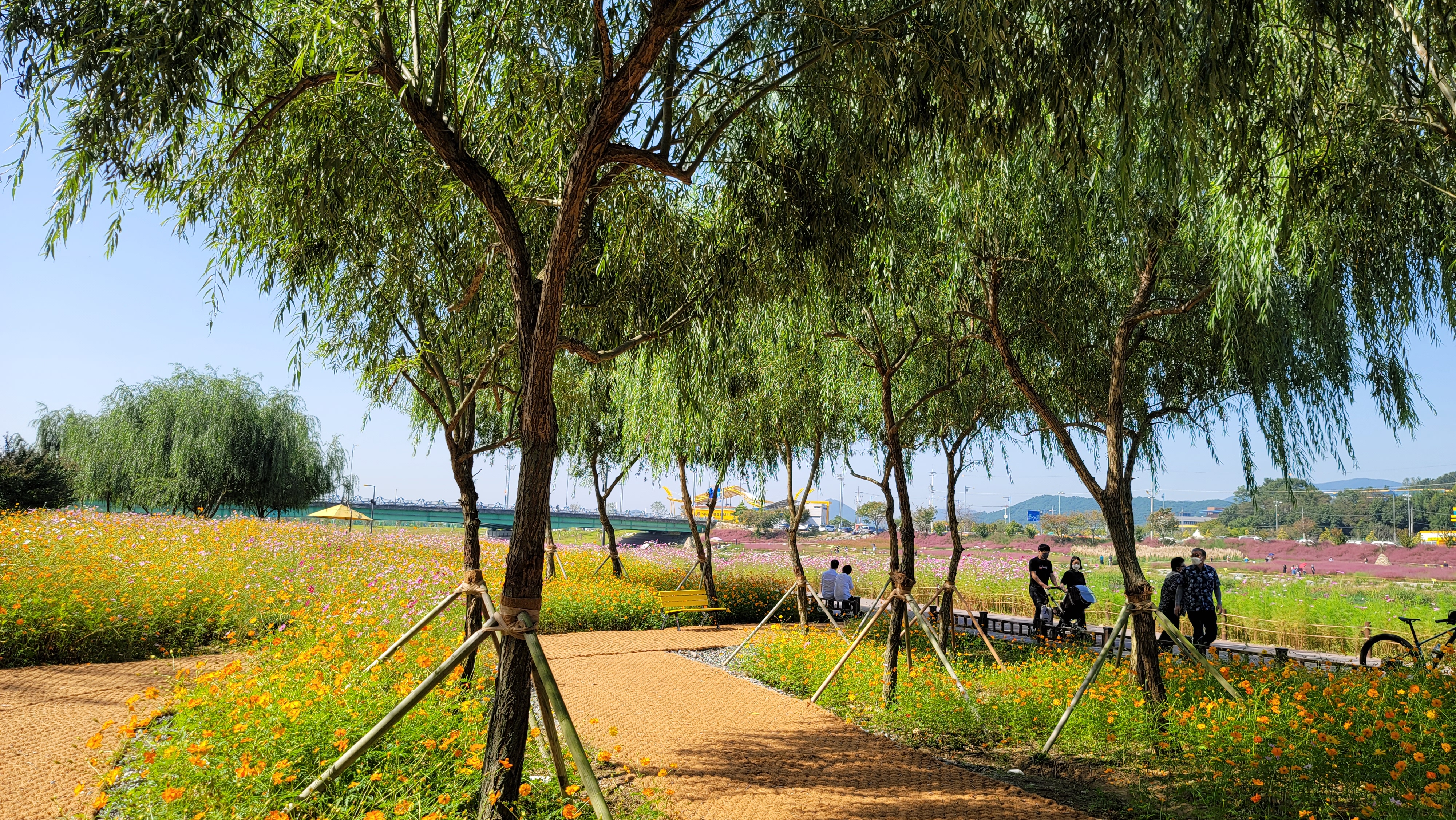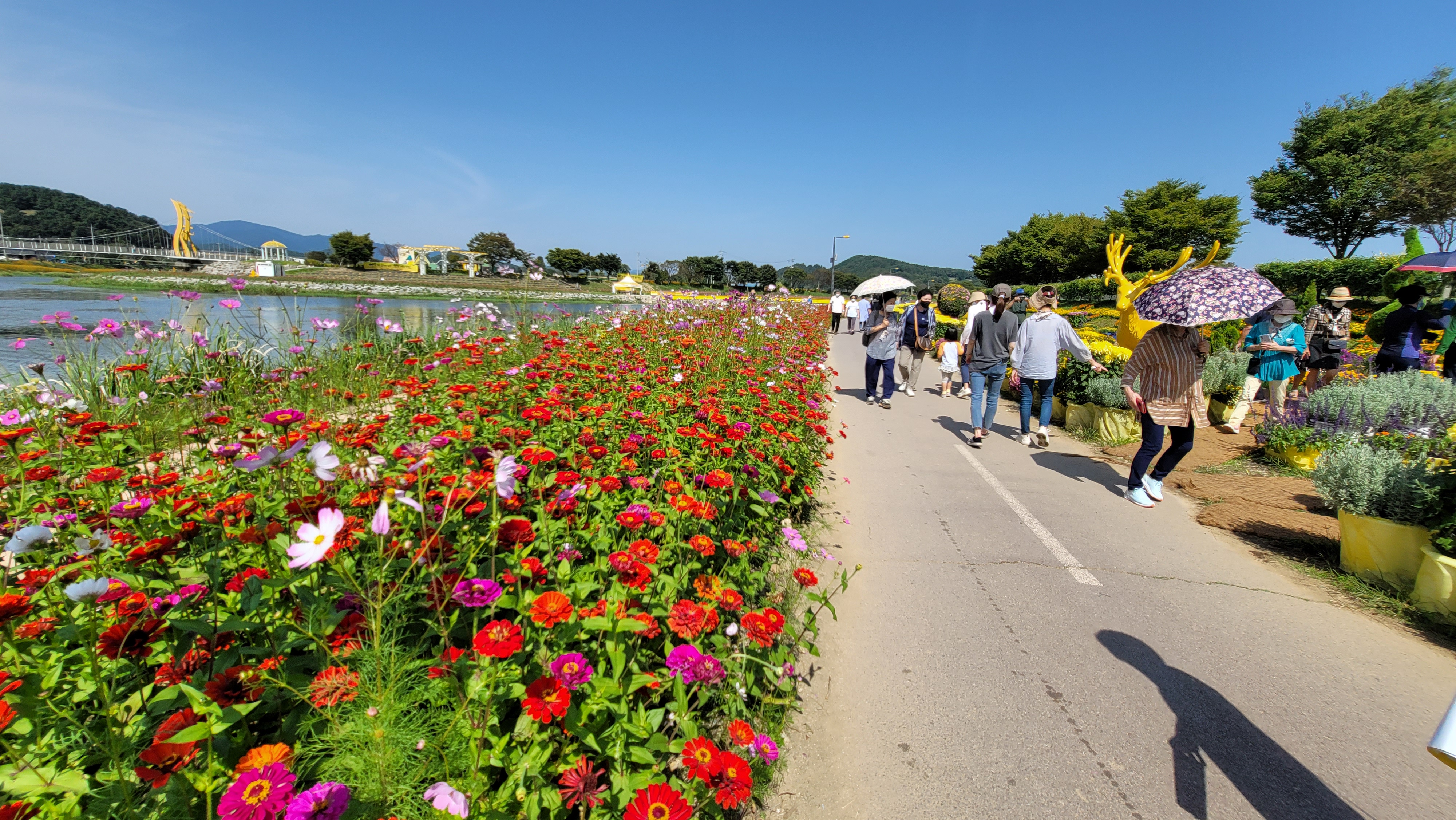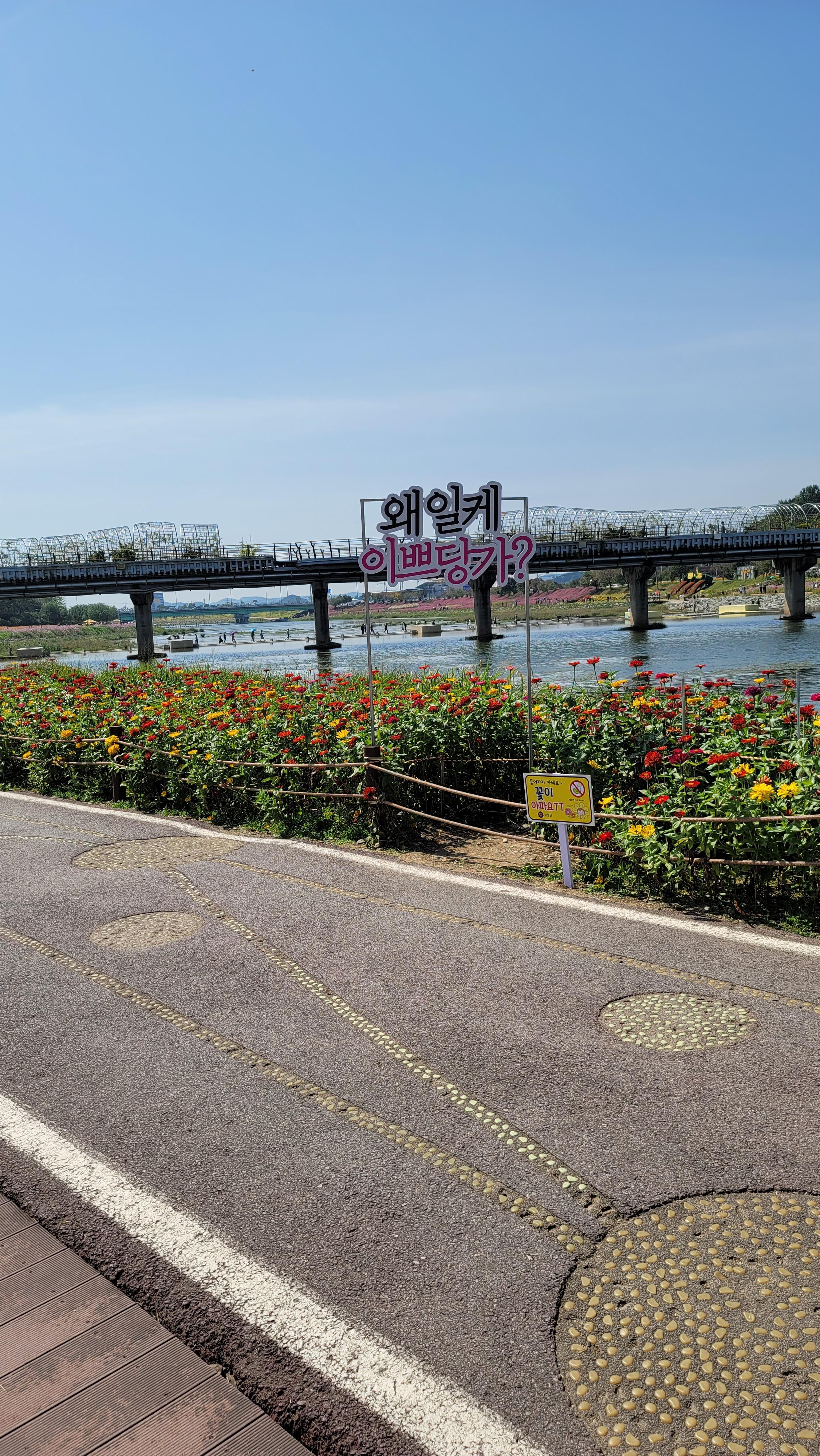 하지만 사람들이 그런 것에 아랑곳하랴, 코로나 주사도 맞았겠다 안심이 조금 되는지, 역시나 황룡강 축제 장소로 와보니 사람들이 넘쳐났다. 주차는 가까운 황룡강 생태공원 주차장이나 도로 갓길에 세우는 차들이 많이 보였다. 난 솔직히 조용한 곳을 원했는데 일요일이다 보니 커플, 부부와 아이들, 어르신, 여사님들, 외국인 같은 사람들이 많이 보였다. 그래도 추억의 사진을 남겨야 할 텐데, 눈앞에 펼쳐진 꽃들에 기분은 좋아진다. 예쁜 장소마다 서로 사진 찍기 위해 너무 많은 대기줄이 있다 보니 셀프 사진 찍기 좀 부끄러웠다. 그냥 친구나 찍어주기..ㅋㅋ