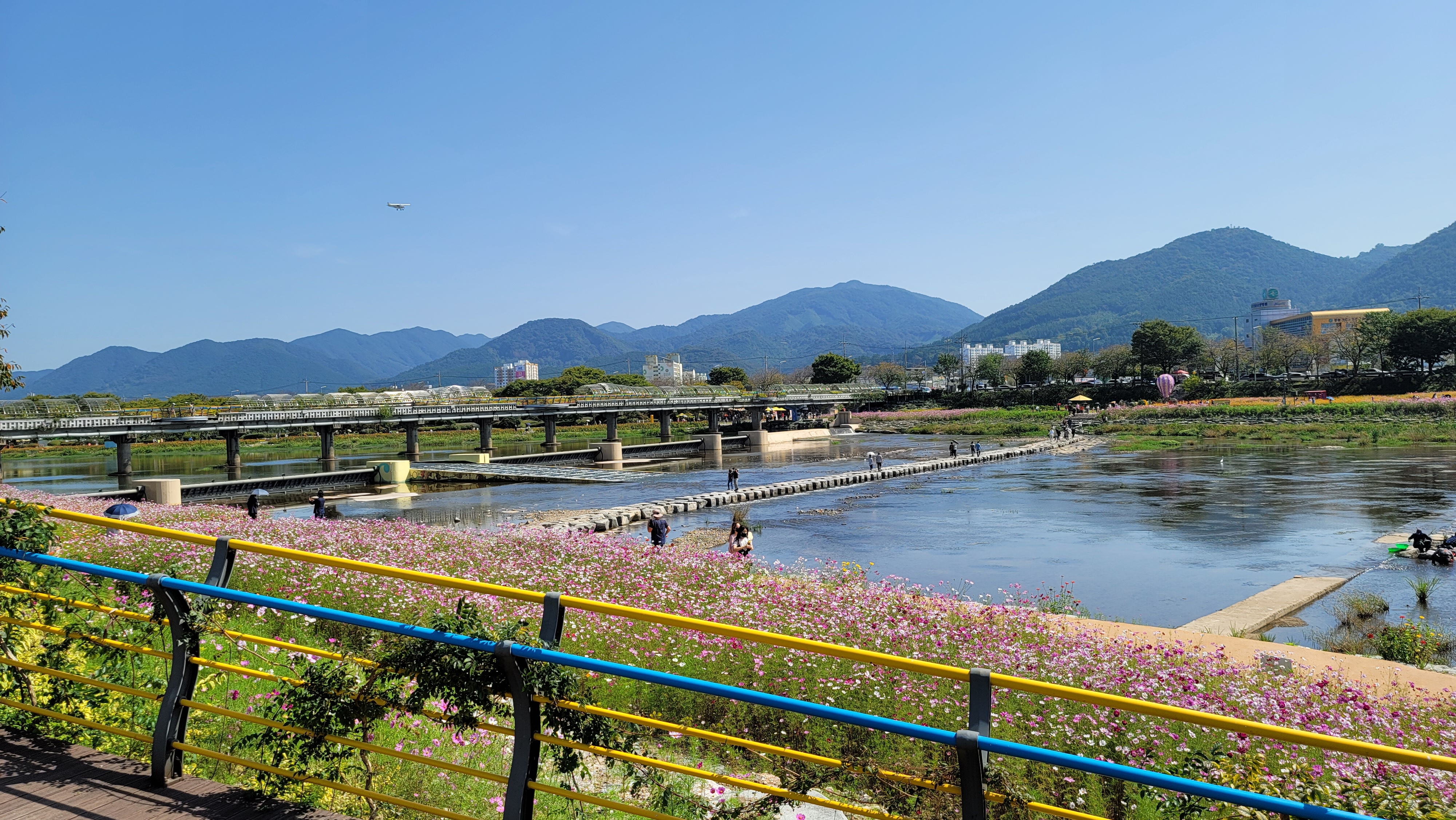 오늘은 날씨도 맑고 화창했는데, 강도 깨끗해 보였다.