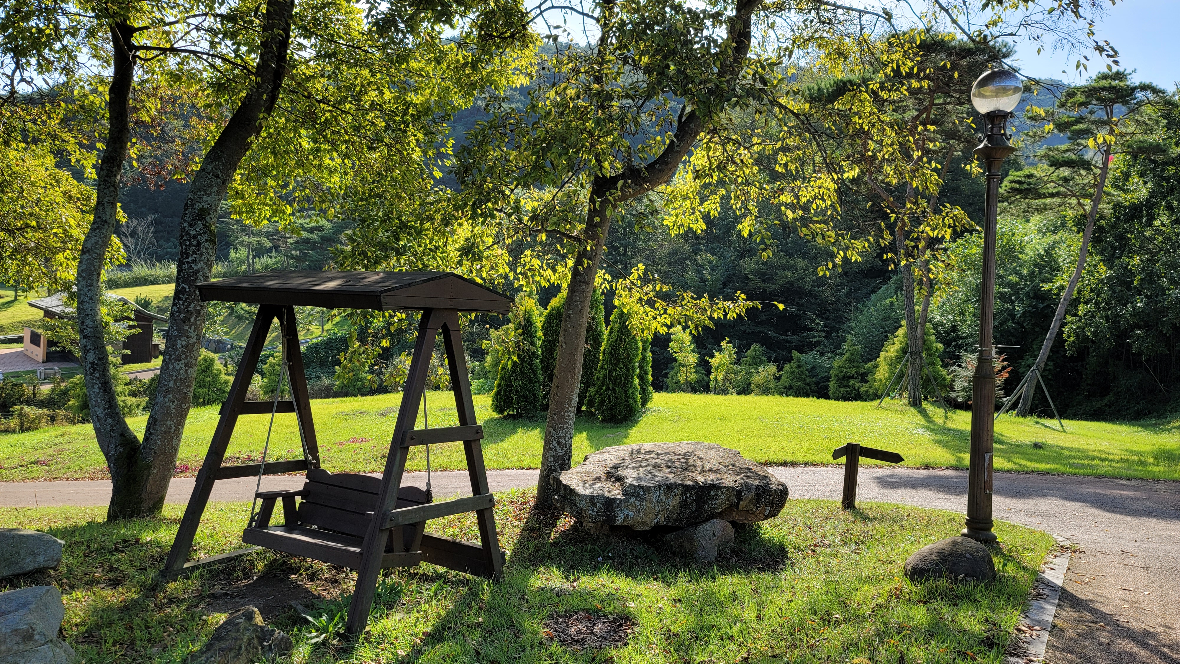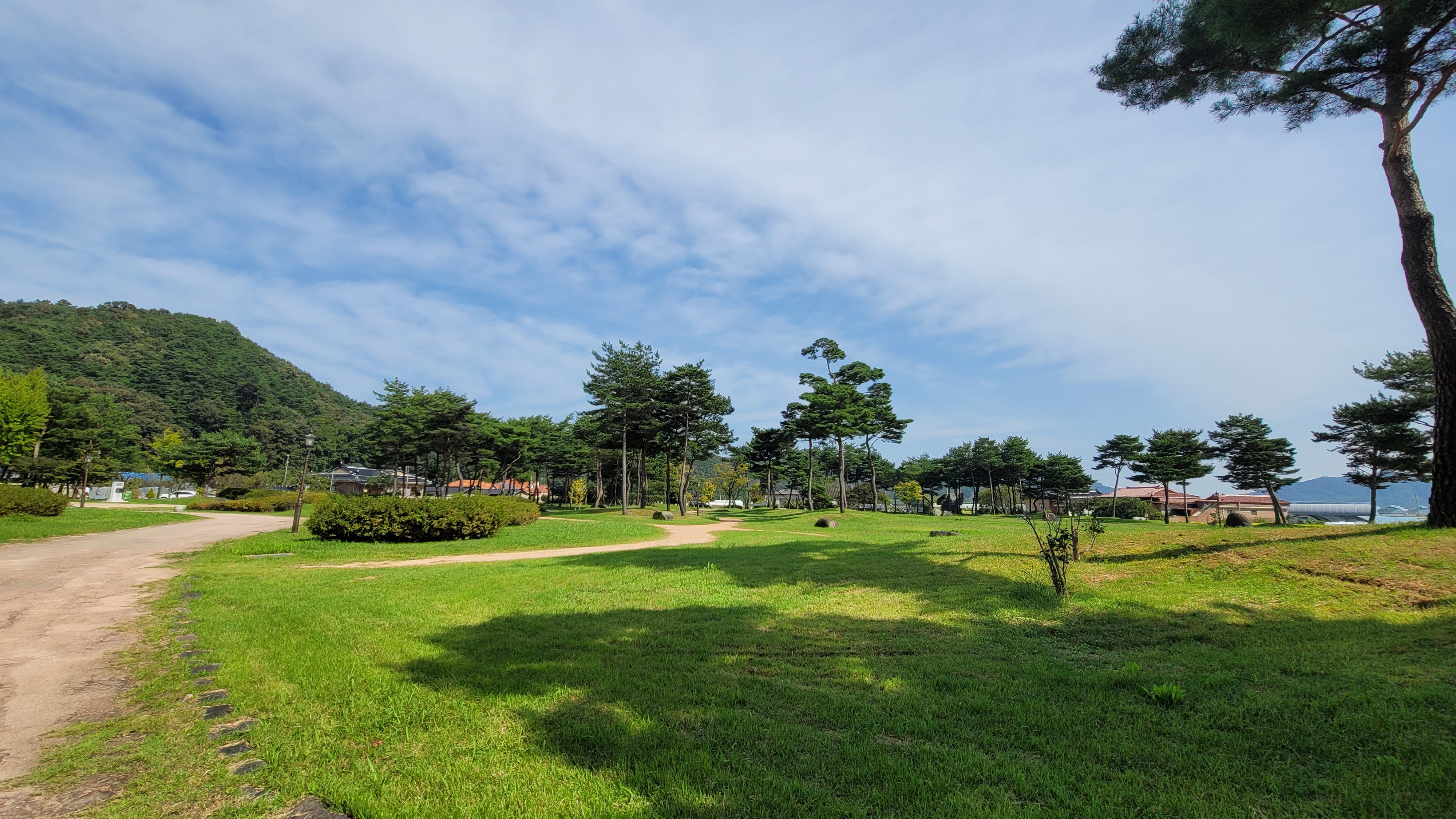 하필 몇몇 건물이 공사 중이었다. 코로나19 방문자 체크 후, 주위를 둘러보다 우리에게 어떤 부인이 말을 건다. 알고 보니 설명 가이드였다. 우리는 시간이 없어 건성건성 할 수 밖에 없었는데, 멀리 보이는 나무가 바람에 쓸리는 소리는 너무 좋았다. 동영상을 찍어야 하는데 가이드님이 계속 말을 거는 바람에 찍지 못했다.