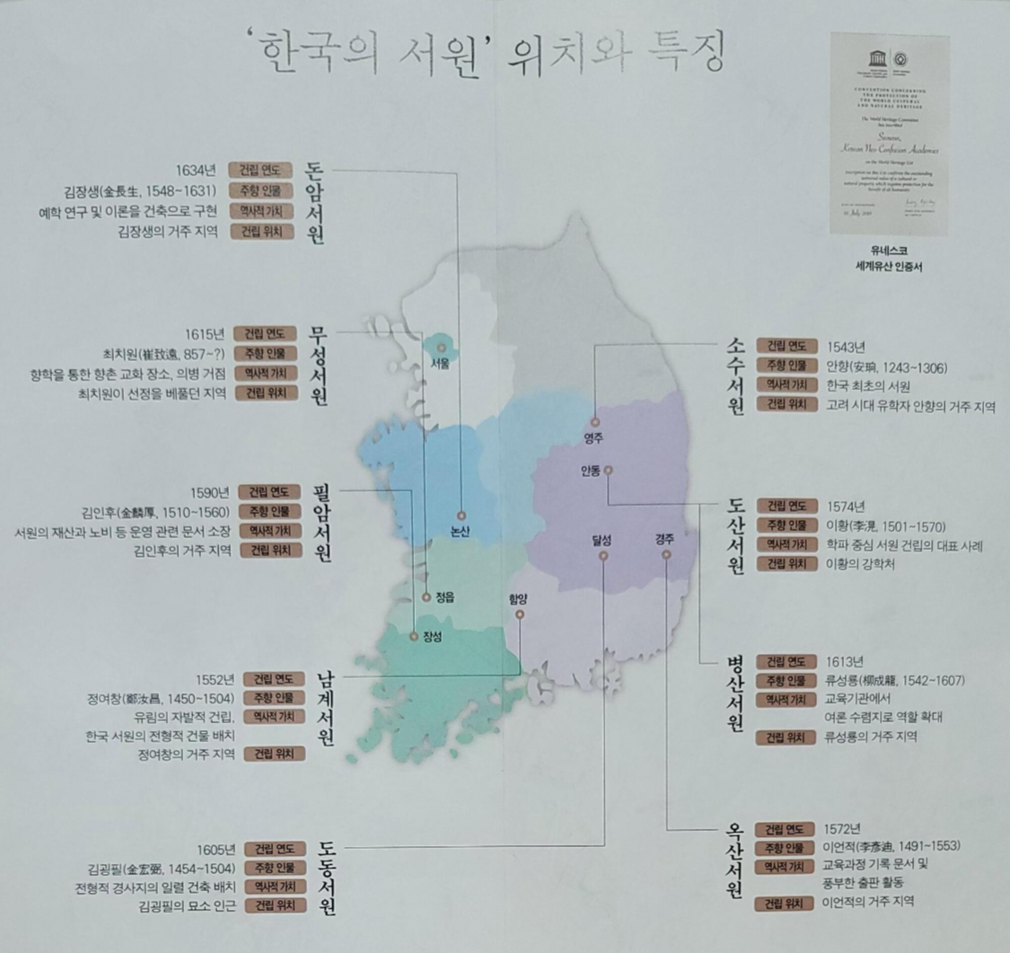 한국에 현존하는 9개의 서원들은 유네스코 세계유산에 등재돼있다.
