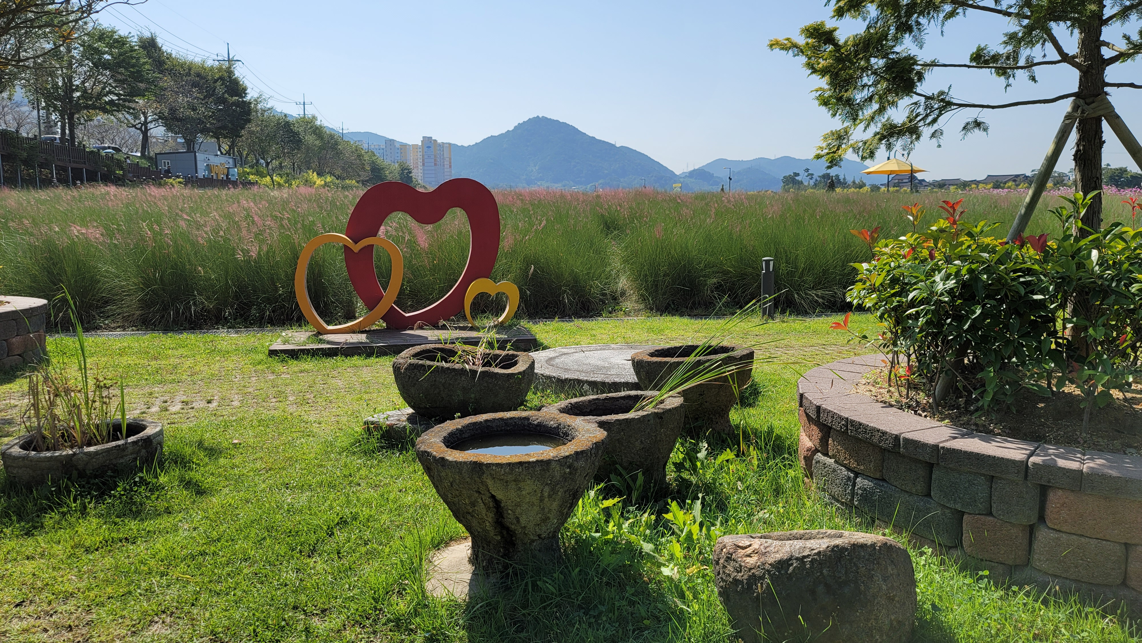 더 진한 핑크뮬리를 보기 위해 돌다리를 건너 반대편으로 넘어가기로 했다. 넘어가기 전 다리 밑 쪽에서 코로나19 방역 초소를 들렸는데 손 소독과 더불어 전화번호로 방문자 인증을 거쳤다. 그리고 이 지역 팜플렛 얻기.