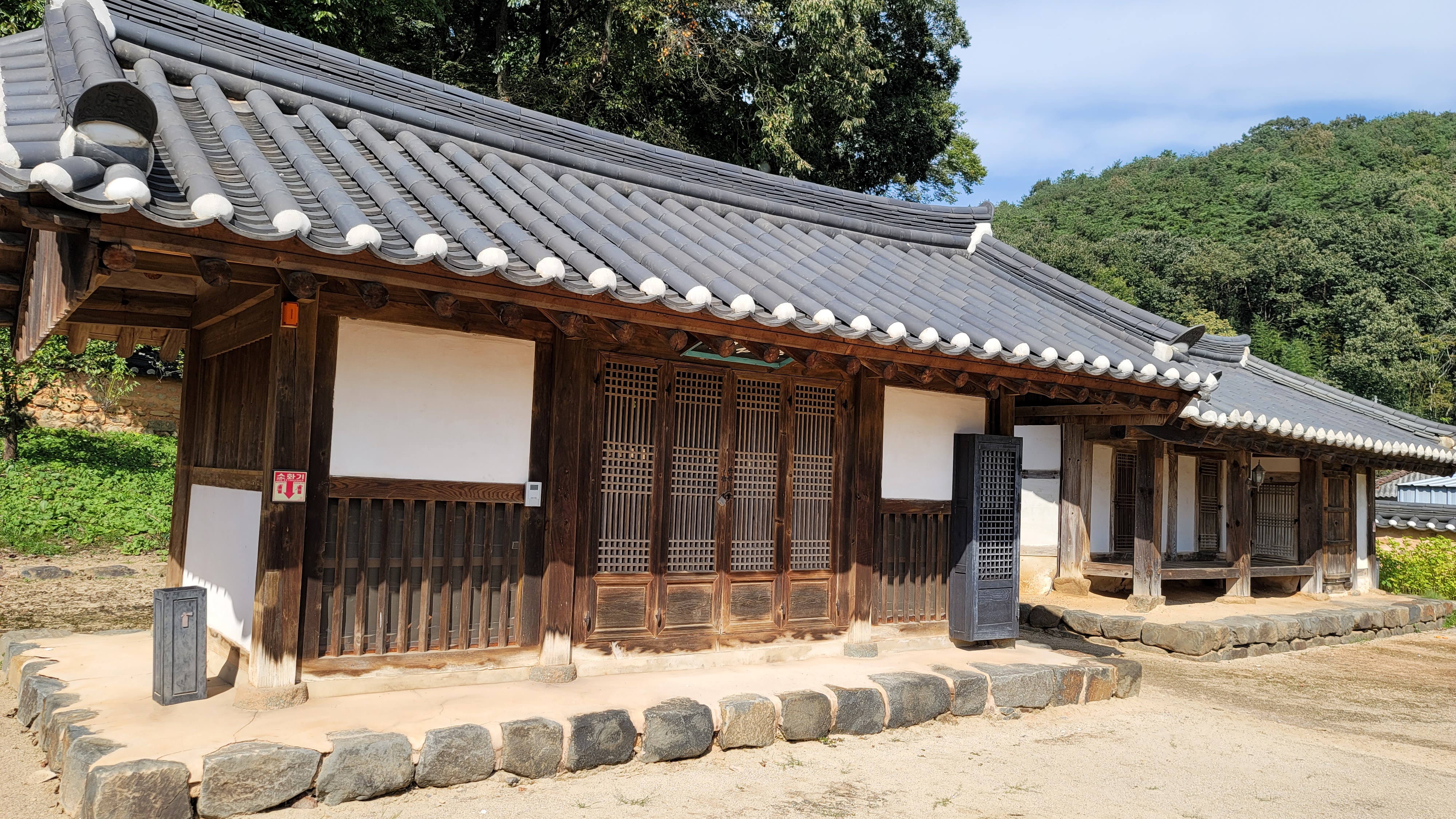 홍길동 생가, 오른쪽이 작당모의 하던 사랑채다.