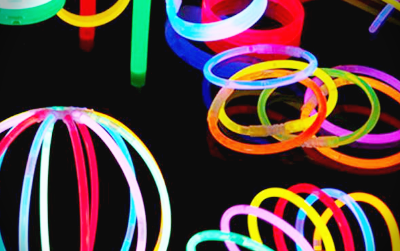 ※ 단시간이 되면 끝나는 야광팔찌는 다이페닐옥살레이트라는 형광물질과 과산화수소가 들어있다. 똑딱 꺾어 두성분이 만나 화학반응이 일어나면 이산화탄소가 발생하고 이로 인해 생성된 에너지로 형광물질의 빛을 발산하게 만든다.