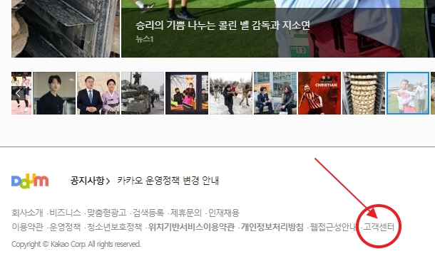 그리고 맨 밑에 보시면 고객센터 글씨가 있는 데요.