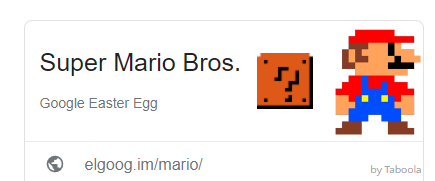 브라우저 상단 주소창에 https://elgoog.im/mario/을 적으면 검색이 되는데 왼쪽 편을 잘 보시면 슈퍼마리오가 물음표 상자와 함께 있습니다.