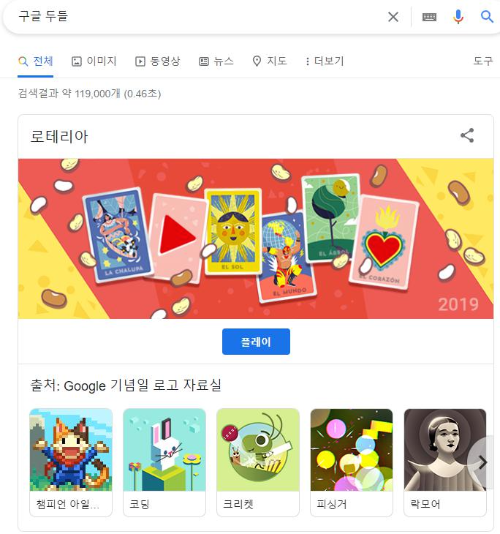게임으로 로고를 꾸민 것도 많은데, 검색창에 '구글 두들'이라고 검색하면 다양하고 퀄리티 있는 게임들을 즐기실 수 있습니다.