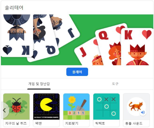 ※ 추천 게임 : 검색은 이렇게 해보세요. 지뢰찾기, 틱택토, 호흡운동, 솔리테어, 정원요정, 지구의 날 퀴즈, 등등