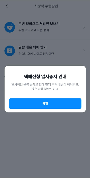 비대면 진료가 너무 쉬워 '와 쉽고 편하네' 라고 생각할 쯤, 처방전을 이용한 약 수령에서 난관에 빠지게 된다. 내 원래 목적은 일반 배송으로 처방약을 받으려고 했지만..