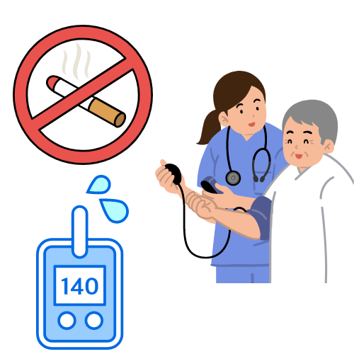 말초동맥 질환을 일으키는 큰 원인 중 하나는 노령과 더불어 고혈압과 당뇨 그리고 흡연인데요. 특히, 흡연은 몸내 혈관을 수축시키고 혈류량 감소를 촉진시키기 때문에 말초동맥 질환 발생의 가장 위험한 인자로 보고 있습니다.