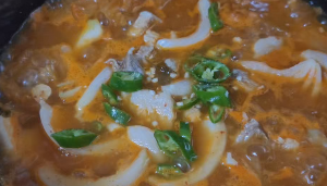 8. 취향에 따라 청양고추 한 개와 양파 한 개 정도 넣어준다.